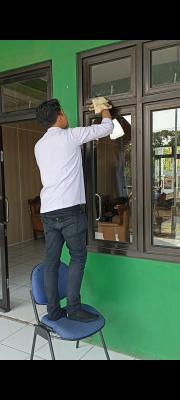 Tidak hanya berfokus pada area luar ruangan, kebersihan di dalam gedung juga menjadi perhatian utama. Para pegawai bergotong royong merapikan ruang tunggu pelayanan administrasi, menata ulang arsip-arsip dokumen, serta membersihkan perangkat kerja dan fasilitas kantor lainnya agar lebih rapi dan terawat.