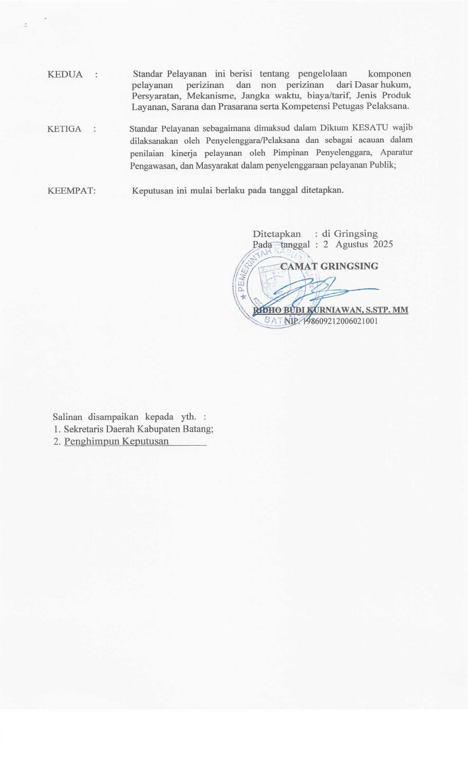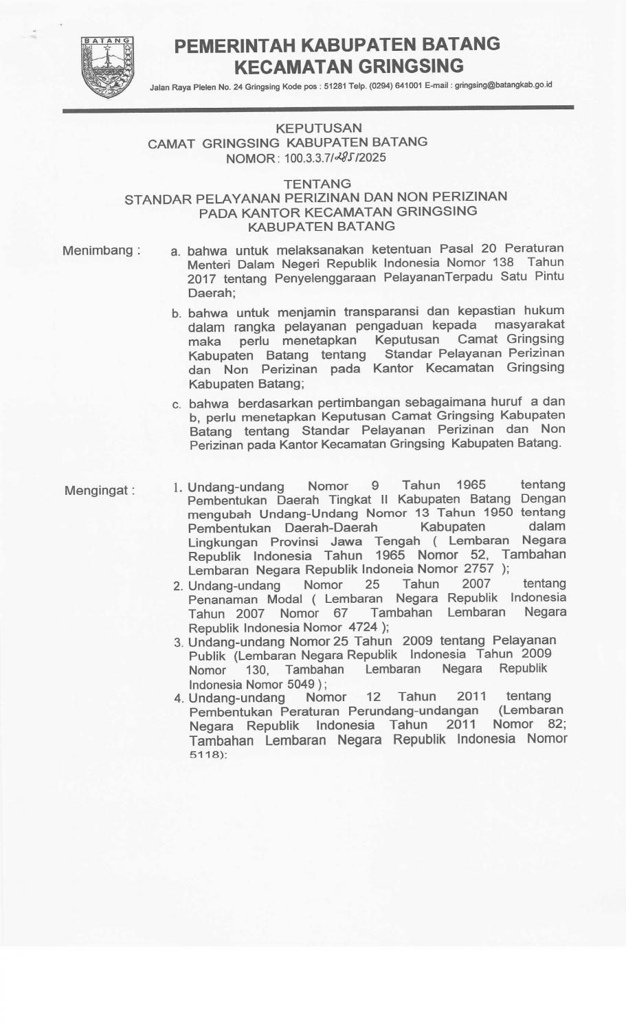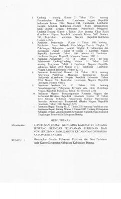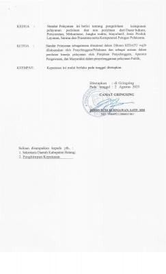 Surat Keputusan Camat Tentang Standar Pelayanan di Lingkungan Kecamatan Gringsing Kabupaten Batang